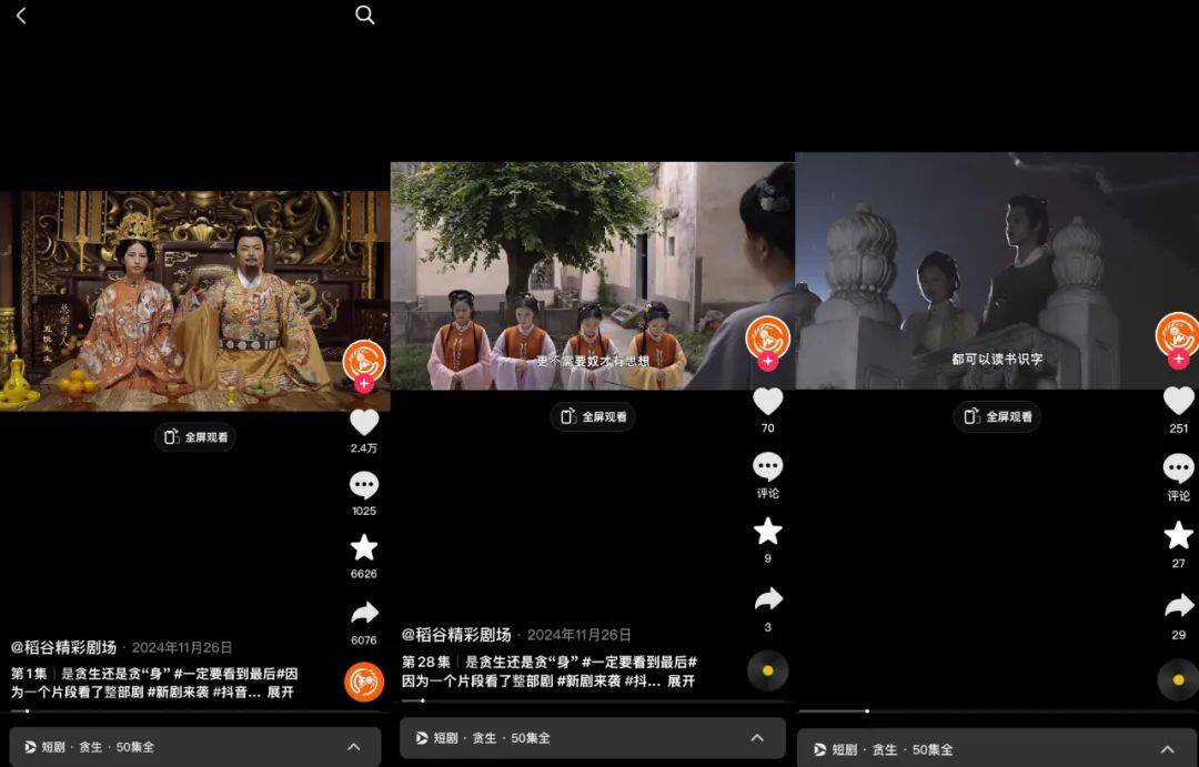 用户方面,短剧受众呈现出多样化的趋势。付费短剧用户主要为大龄、下沉市场,而免费短剧则吸引了更多年轻、女性及高线城市的观众。例如,《贪生》这类符合年轻人审美的短剧,凭借其专业的妆造和灯光设计以及反封建的精神内核,赢得了众多年轻观众的喜爱,进一步证明了优质内容的重要性。