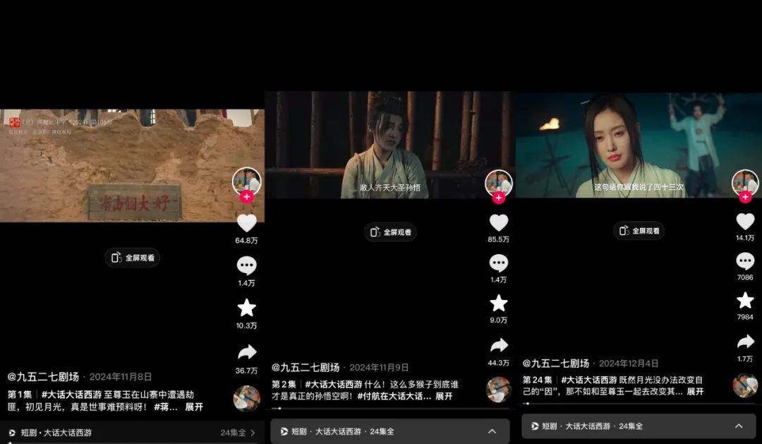 为了满足不同用户的多元化需求,各平台不断探索新的题材类型。快手推出了包括代际关系、校园青春在内的多种新题材;抖音则推出了周星驰旗下IP“九五二七剧场”的作品以及其他文旅、家庭情感类短剧,极大地丰富了短剧的内容生态。同时,精品化依然是行业发展的核心方向,各大平台加大了对优质内容的投资力度,并通过联合开发等方式推动IP资源的有效利用